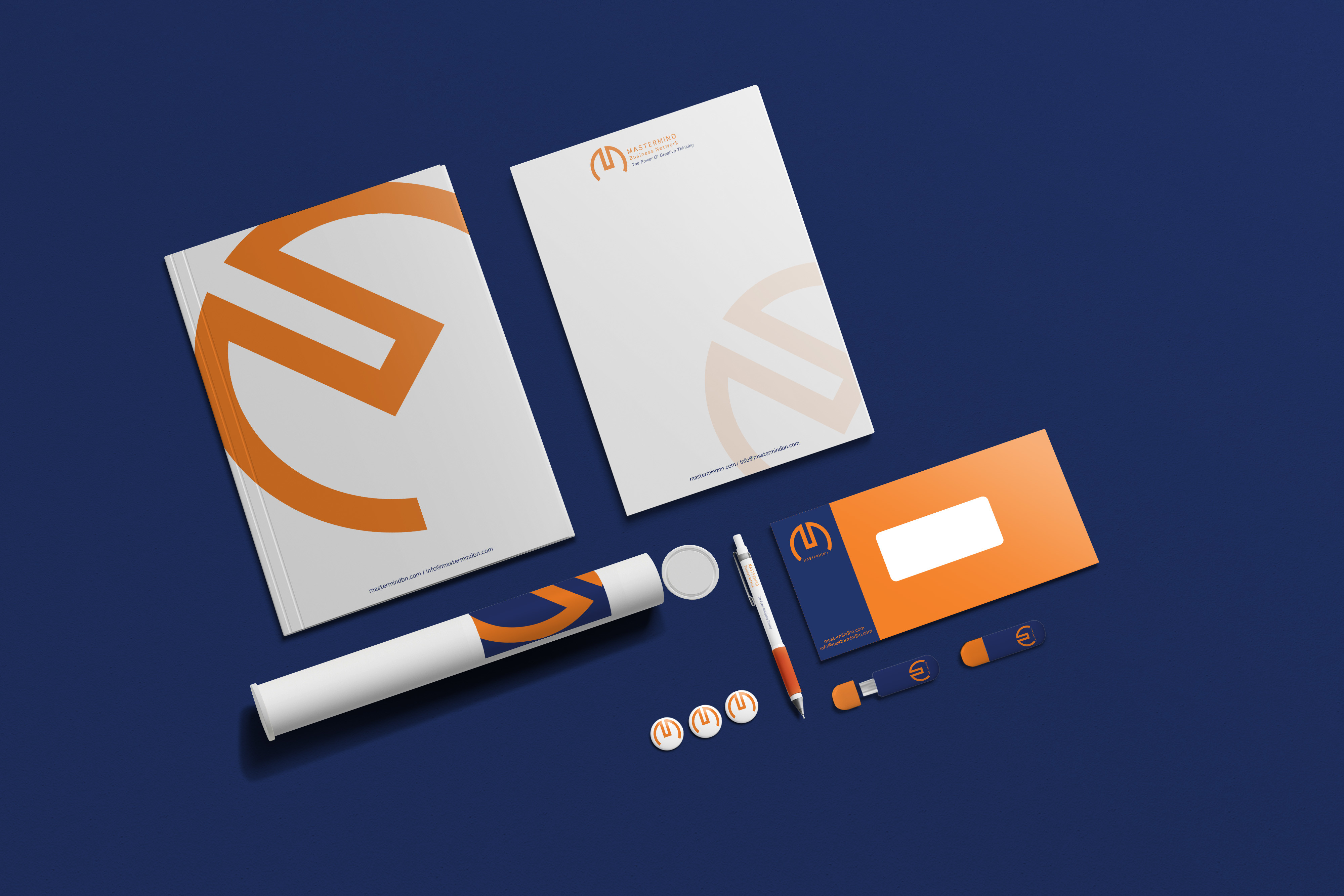 The next stage was for us to work on initial ideas for the logo and colour scheme. These were presented to the client and they chose to go with the "Mastermind M logo" which focused on the idea of the M being an overhead view of the brain. The colour scheme was based around the clients suggestion of orange which we felt gave a vibrant and energetic feel along with a deep blue giving a slightly more corporate element. We then gave the client a full suite of Mastermind "M" logos which could be used in any situation.